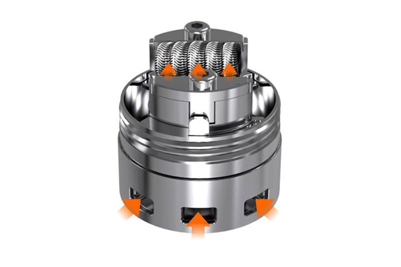 Pour créer de la vapeur, l’exposition du liquide à une résistance brûlante ne suffit pas. En effet, afin de recueillir une dose de nuages suffisante lorsqu’on aspire dans le drip-tip (l’embout buccal), l’atomiseur présente un petit trou d’air appelé « airflow » qui permet d’alimenter la chambre de chauffe en oxygène.