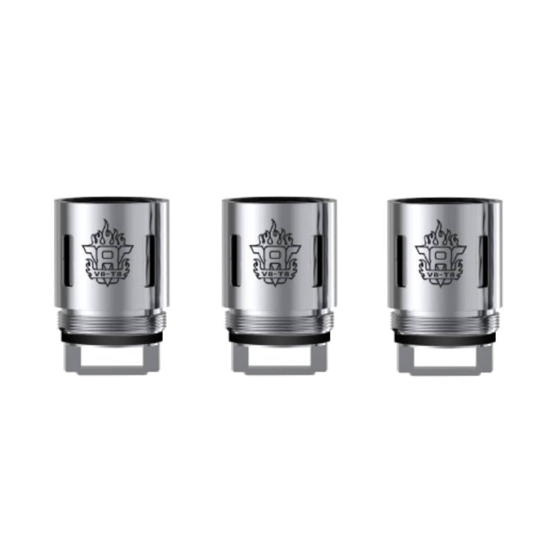 Résistances TFV8 conçues pour le clearomiseur TFV8 de Smoktech. Ces dernières sont conçues en kanthal et coton organique japonais; elles procurent un très gros volume de vapeur. Ces réssistances demandent une puissance élevée en watt, veillez bien à ce que votre box ou cigarette électronique en ait bien les capacités.